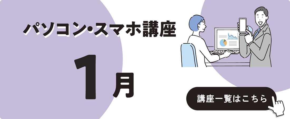 1月開催のパソコン入門・初級講座、スマホ入門・初級講座、パソコン創作講座です。 ...