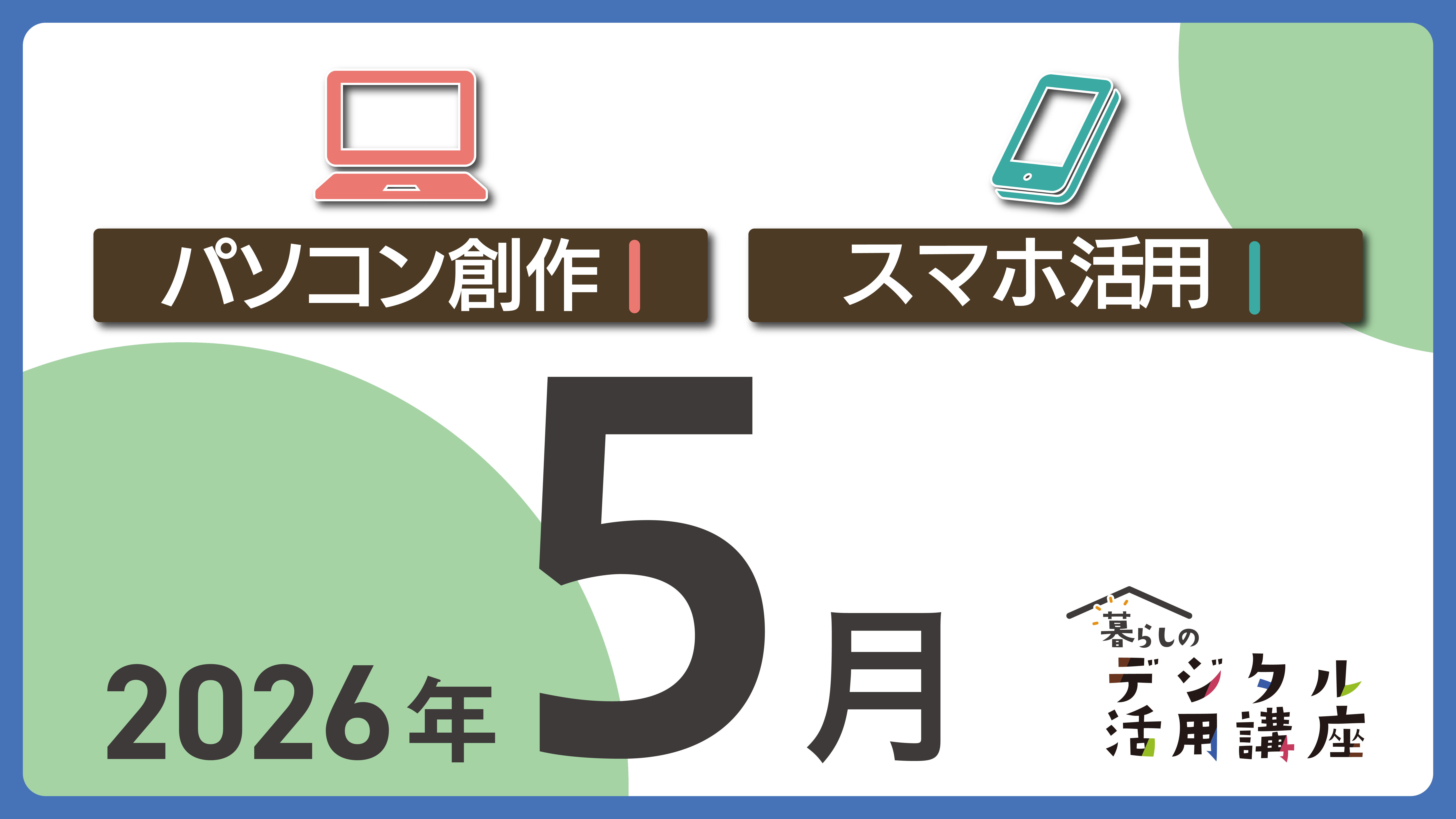 5月開催の「パソコン創作講座」「スマホ講座」のお申し込みページです。