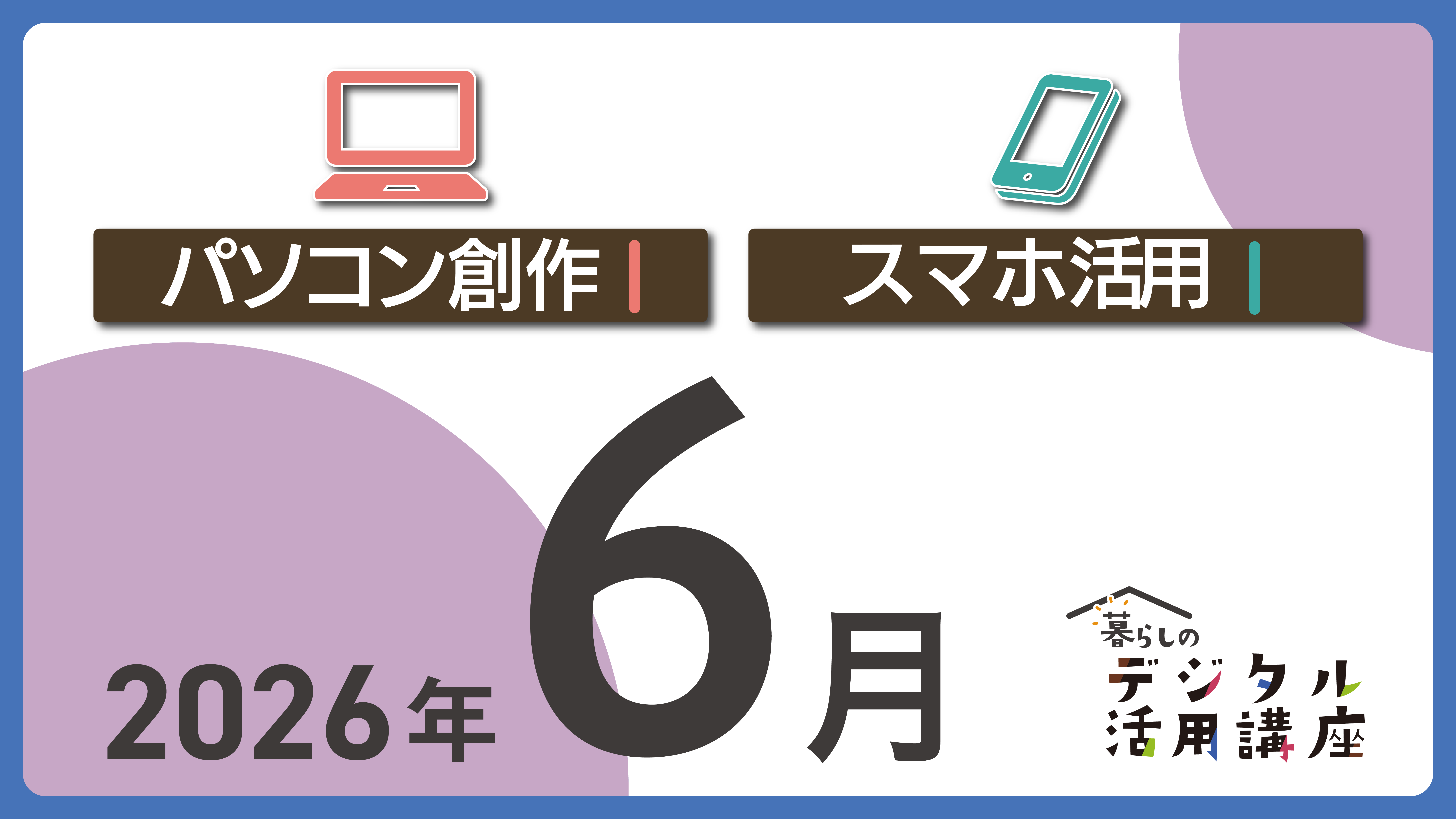 6月開催の「パソコン創作講座」「スマホ講座」のお申し込みページです。