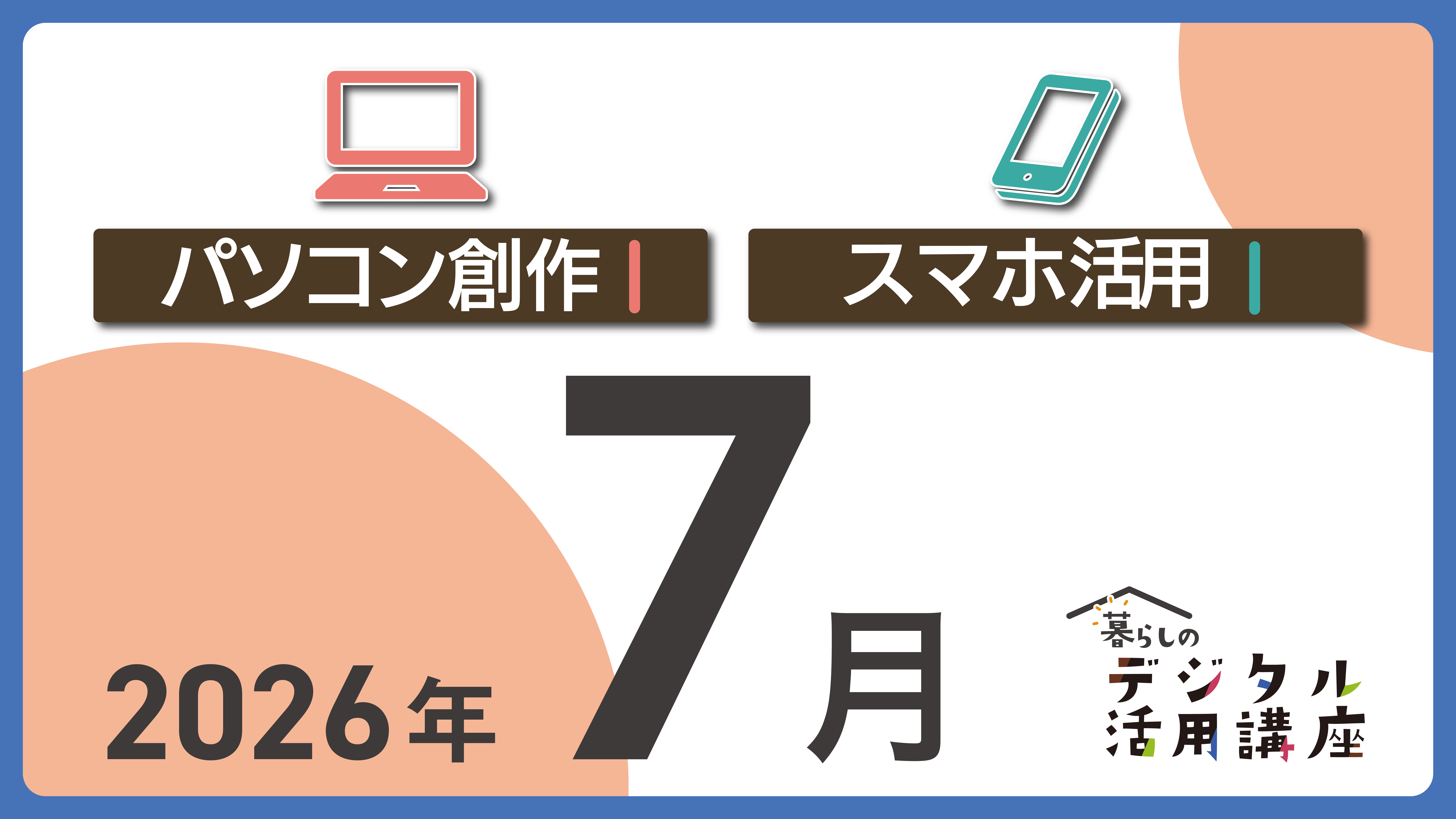 7月開催の「パソコン創作講座」「スマホ講座」のお申し込みページです。