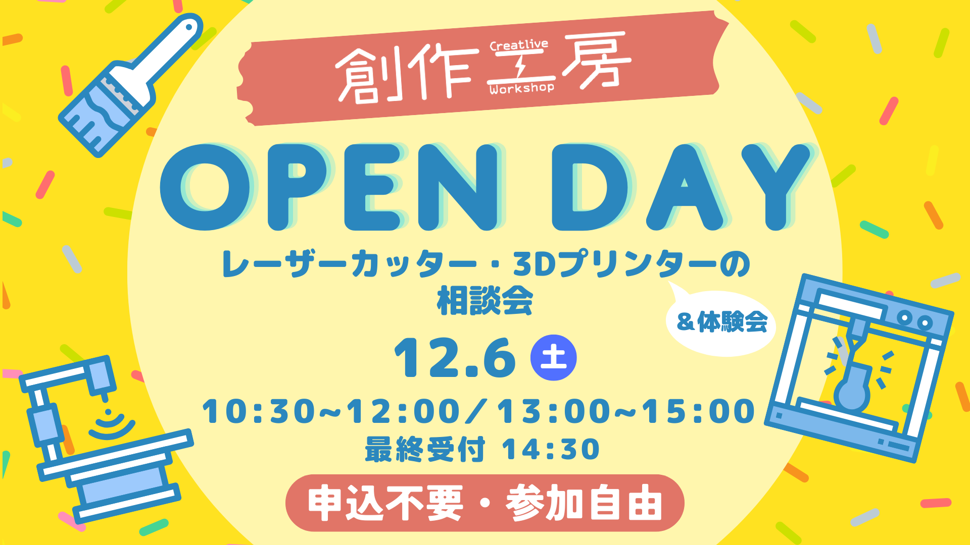 データ作成の方法から、簡単なプロトタイプの作り方、デジタル機器の活用方法など、創作工房スタッフがみなさんの質問・疑問にお答え。レーザーカッター・3Dプリンターを使った体験も可能です。